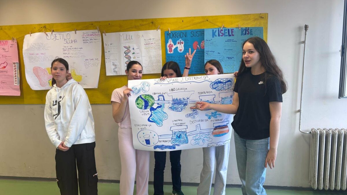 Učenici su bili podijeljeni u dvije skupine i kroz timski rad izrađivali plakate na teme: kruženje vode u prirodi te sakupljanje i distribucija vode. Svoje su radove prezentirali jedni drugima, čime su dodatno učvrstili naučeno gradivo.